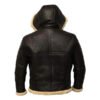 B3 Black Bomber Shearling Leather Jacket Removable Hooded
