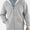 Designed with Carhartt’s signature quality, the hoodie features a sturdy zip closure that allows easy styling and quick adjustments. The front kangaroo pockets offer convenient storage for small items and keep your hands warm on chilly days. Its rib-knit cuffs and hem provide a secure fit that helps lock in warmth while maintaining shape even after frequent wear.