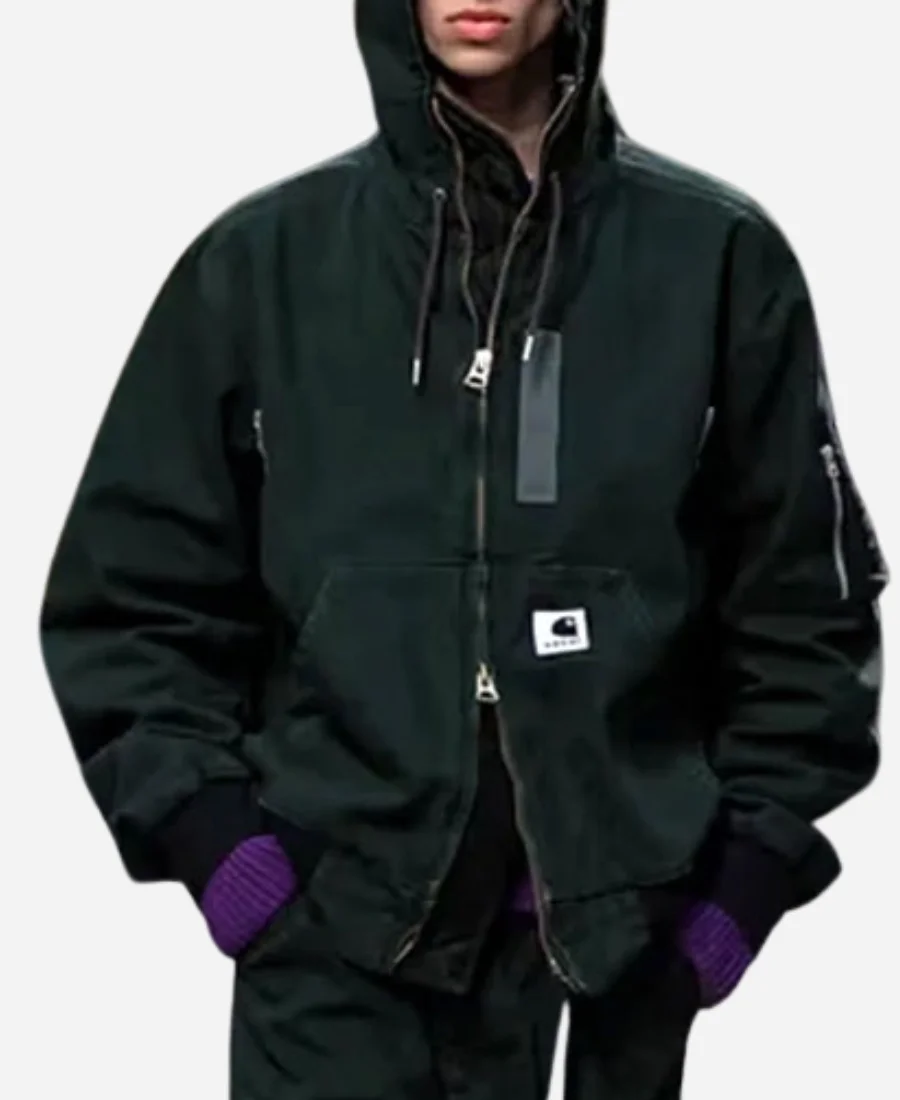 The FW25 Sacai X Carhartt Green Hooded Jacket from Fame Leather Jackets brings together rugged Carhartt durability with Sacai’s high-fashion edge. Crafted from premium quality materials, it delivers both comfort and resilience, making it the perfect jacket for daily wear and seasonal layering. Its deep green shade adds a bold statement to your wardrobe while staying versatile enough to style with multiple outfits. Whether you’re traveling, hanging out with friends, or braving colder days, this jacket adapts effortlessly to your lifestyle.