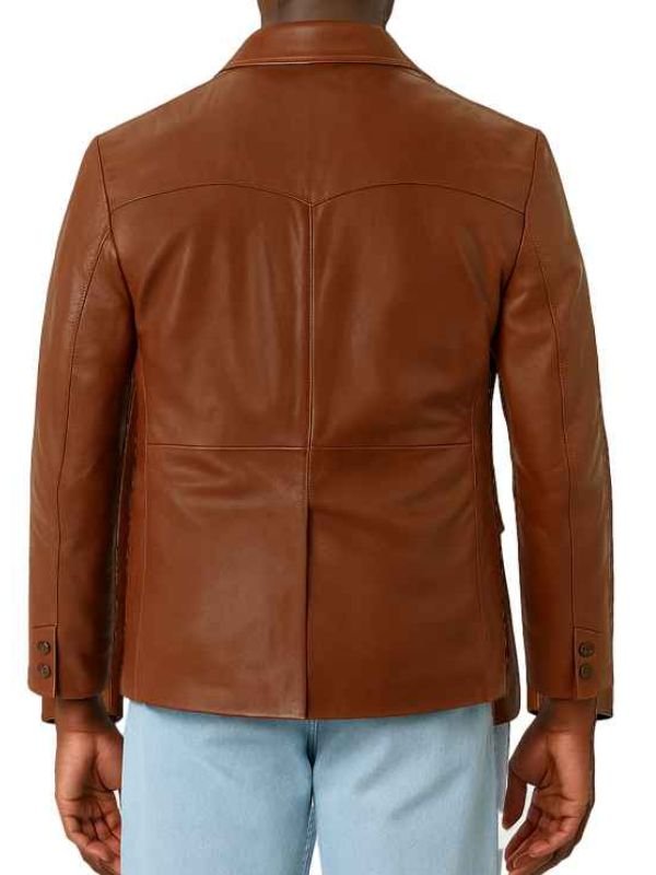 Two Button Brown Lapel Leather Blazer For Men’s