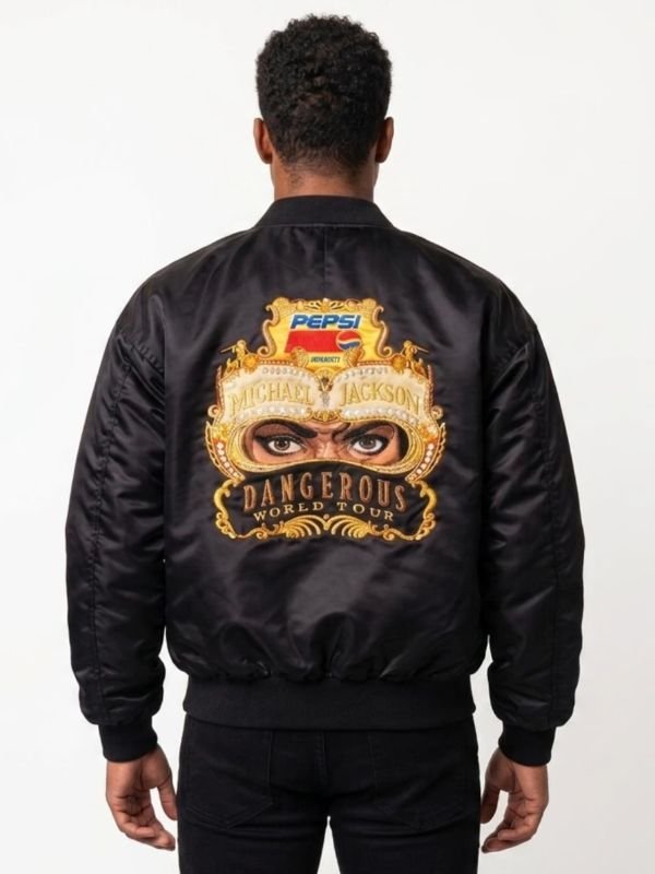 The Michael Jackson Pepsi Bomber Jacket is a bold and iconic outerwear piece inspired by the King of Pop, Michael Jackson, during his legendary Dangerous World Tour era and his memorable collaboration with Pepsi. This jacket captures a unique moment in music and fashion history, making it a must-have for fans and collectors. As a result, it stands out as a timeless statement piece.