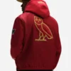 The OVO San Francisco 49ers Starter Jacket is a bold collaboration that blends NFL heritage with OVO’s signature streetwear style. Designed for true 49ers fans, this pullover jacket delivers comfort, durability, and standout appeal.